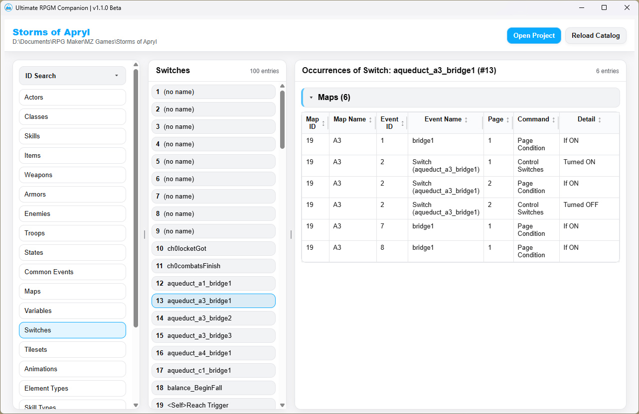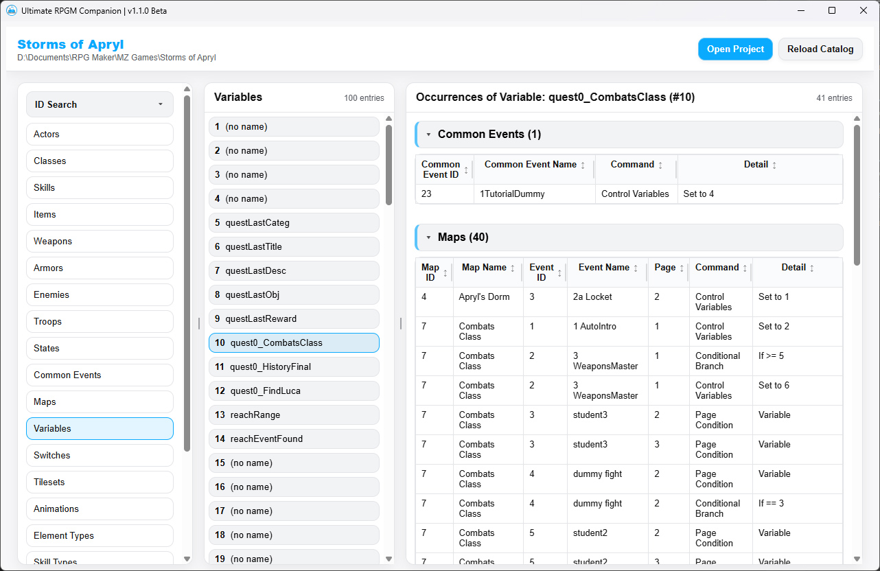 Take more control of your RPG Maker MV/MZ game! This desktop app helps you find, refactor, and reorganize your project more efficiently than in the engine!